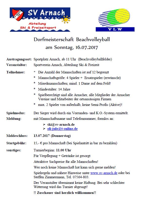 Auch Zuschauer und Fans sind herzlich willkommen. Das Turnier beginnt um 11:00 Uhr. Anmeldungen über ski@sv-arnach.de oder oli-jule@t-online.de
