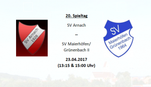 Sonntag, 23.04.2017 (Damen): SV Arnach – SV Baindt (10:30 Uhr) Sonntag, 23.04.2017 (Herren): SV Arnach II – SV Maierhöfen/Grünenbach III