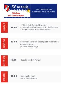 Die ordentliche Mitgliederversammlung des SV Arnach findet am Samstag, den 31. Juli 2021 um 18:30 Uhr auf der Terrasse vor