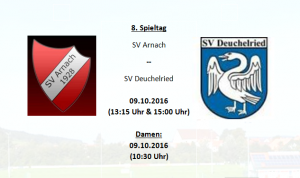 Samstag, 08.10.2016 (A-Jugend): SV Immenried – SGM Bad Wurzach/Arnach (17:00 Uhr) Sonntag, 09.10.2016 (Damen): SV Arnach – SV Deuchelried (10:30 […]