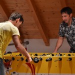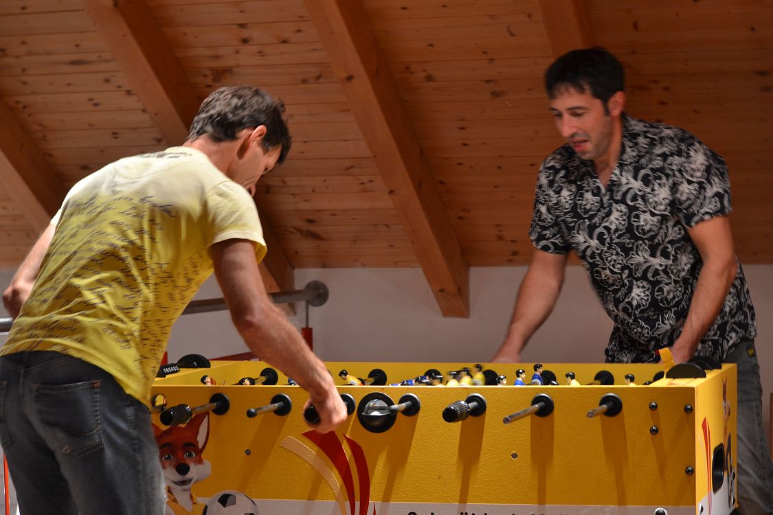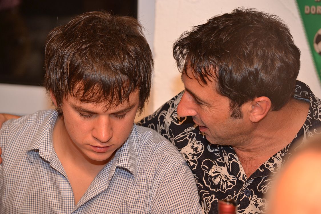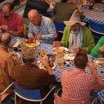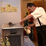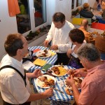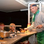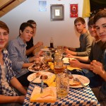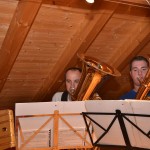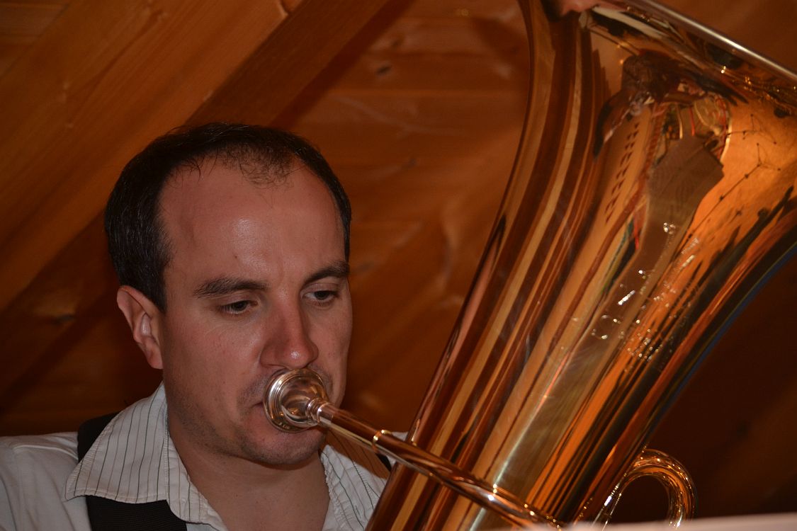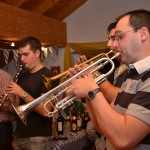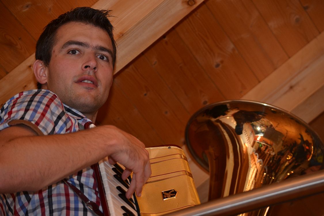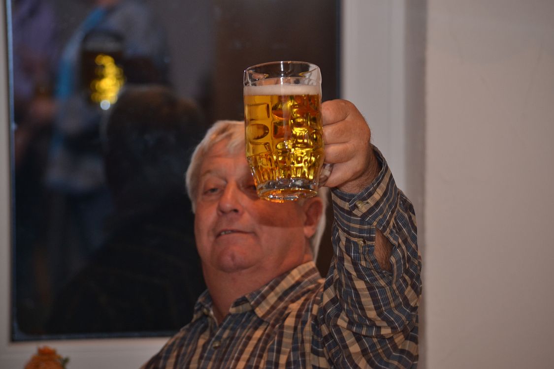 Pünktlich um 20.00 Uhr stand dann auch schon die erste Überraschung parat. Ein „Hähnchenwagen“ vom Bodensee stand vor dem Sportheim und belieferte die hungrigen Gäste mit einem sogenannten „Grillteller“: Hähnchen, Haxen, Spare-Ribs mit Pommes und Wedges waren im nu auf den Tellern verteilt und so nahm der Abend seinen gemütlichen Verlauf. Kurz vor 23 Uhr trafen dann die musikalischen Gäste ein. „ExBIERience“, die kleine Blasmusikbesetzung des Musikvereins Arnach spielte