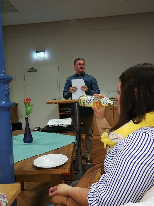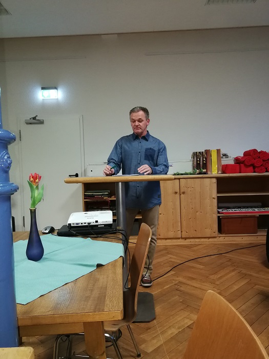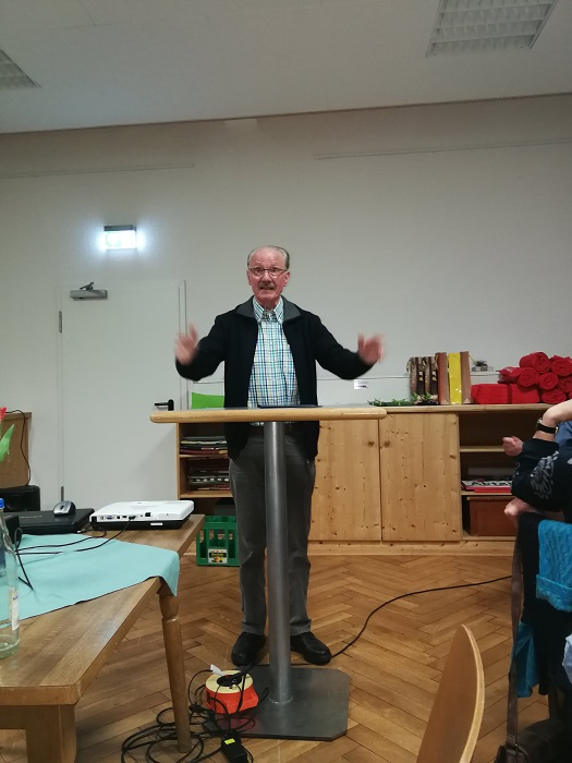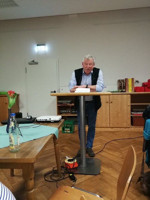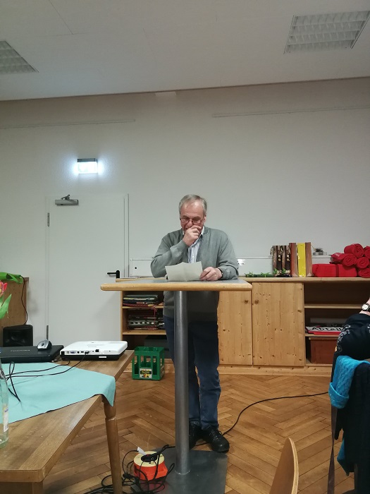 Ewald Riedl stellt noch den geplanten Kauf eines Defibrilators und einer Krankentrage für das Sportgelände über das Crowdfunding der Volksbank Allgäu Oberschwaben vor. Start hierzu ist der 1. Mai 2018. Für jede Spende von 5€ werden von der Volksbank Allgäu Oberschwaben nochmals 10€ dazugespendet. Weiter stellt er noch die Aktionen für 90 Jahre SV Arnach vor.