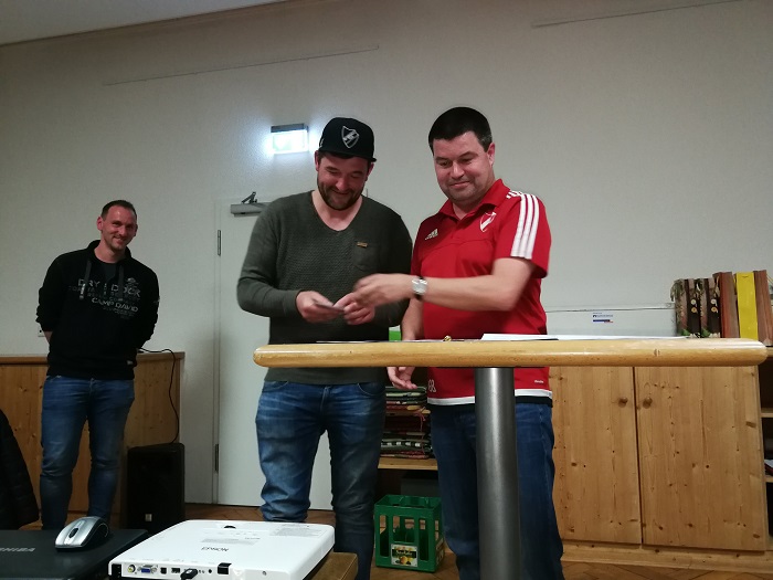 Zum Schluß bedankte sich Ewald Riedl und das Vorstandsteam noch bei Martin Maier für seine geleistete Arbeit beim SV Arnach und 22 Jahre Ehrenamt mit einem Präsent.