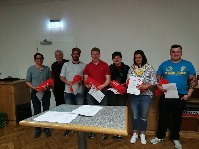 Im Anschluss folgten noch Ehrungen für langjährige Übungsleitertätigkeit und langjährige Mitgliedschaft beim SV Arnach. Ewald Riedl betonte nochmals daß ein Verein nur so gut ist wie seine Übungsleiter und freute sich deshalb hier langjährige Übungsleiter zu ehren. Gemeinsam mit Carmen Prothmann wurden diese mit der Vereinsehrennadel in Bronze, Silber und Gold dekoriert. Die Übungsleiter bekommen zudem noch als Anerkennung ein Präsent in Form eines Saunatuches, Lamy Schreibers mit eingraviertem Namen.