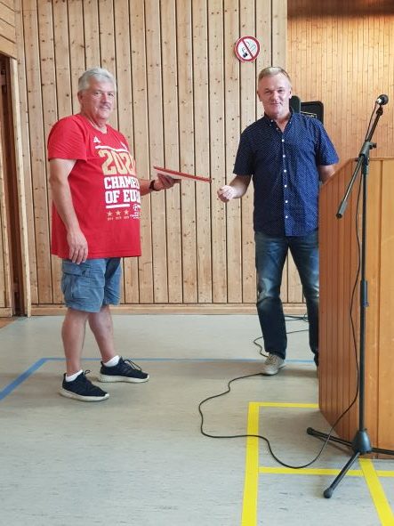 Am Samstag, den 31.07.2021 hielt der SV Arnach seine ordentliche Mitgliederversammlung in der Turnhalle in Arnach ab. Ewald Riedl begrüßte alle Ehrenmitglieder, das Vorstandsteam, Abteilungsverantwortliche, Übungsleiter, sowie alle aktiven und passiven Mitglieder – also alle, die sich in irgendeiner Form für das Wohl des SV Arnach einsetzen. Besonders begrüßte er Gebhard Baumann, der als Vertretung von Ortsvorsteher Mike Raunecker erschienen ist, Rudi Ebel als Vorstand des Fördervereins, Werner Seeger vom Sportkreis Ravensburg und Landessportbundes sowie die heute zu ehrenden Mitglieder.