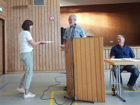 Als Wahlleiter fungiert Gebhard Baumann. Auf sein Nachfragen stimmten alle für eine öffentliche Wahl per Handzeichen.