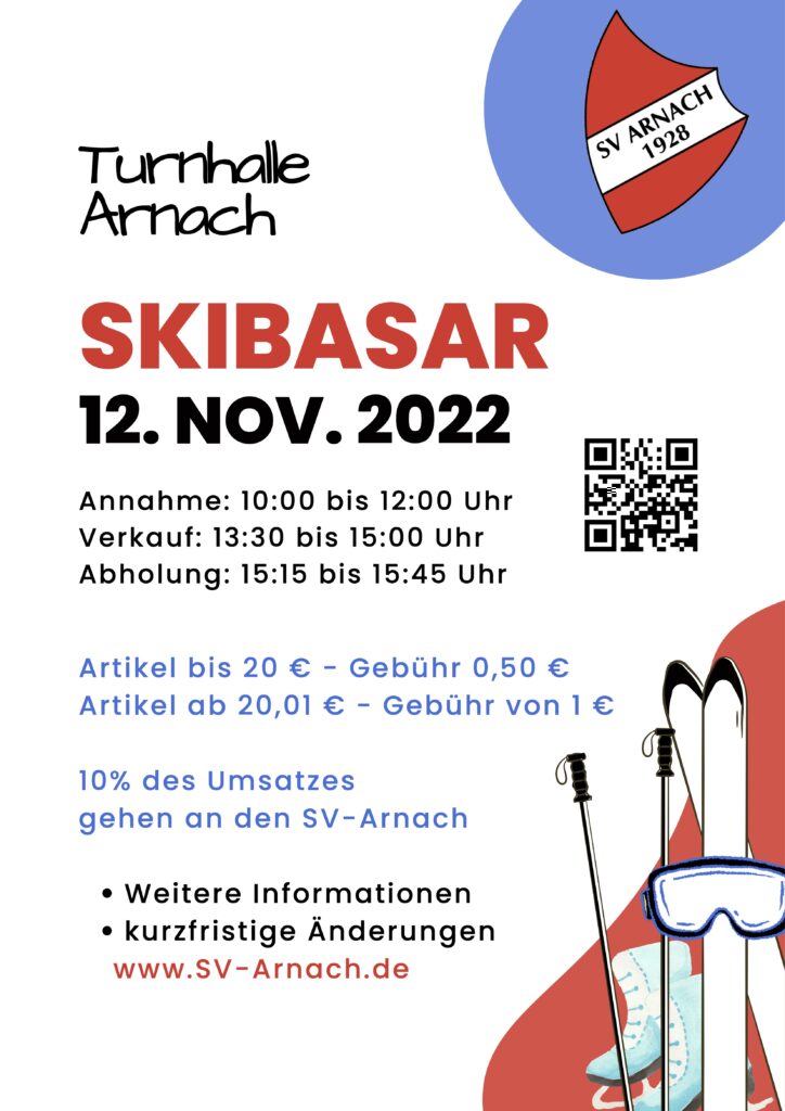Weitere Informationen findet ihr auf der Homepage des SV Arnach www.sv-arnach.de.  Wir freuen uns auf euer Kommen und einen regen Handel mit vielen Win-Wins. Gerne könnt ihr den Skibasar auch euren Bekannten, Freunden und Nachbarn weiterempfehlen.