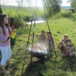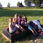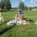 Mit Grillwurst und kühlem Radler feierten die Ausflügler ihre Jungfernfahrt auf der Wurzacher Ach . Auf Gronmeyers Wiese wurde bis in die frühen Abendstunden ausgelassen gespielt und nett beisammen „gehockt“