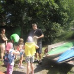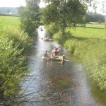 Dank der ruhigen und umsichtigen Art unseres Kapitäns Hermann Schick verflog sehr bald auch die letzte Angst vor dem fließenden Nass, die den teils erst 5 jährigen zu Beginn noch ein wenig im Gesicht stand. Nachdem der Bach in Truschwende noch ziemliche Turbulenzen hatte, wurde das Fahrwasser dann langsam gemütlicher und ließ somit die Kinder immer mutiger und aktionsfreudiger werden.