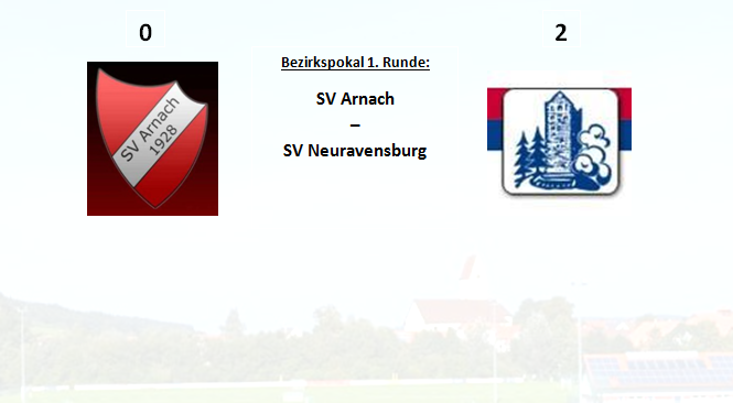 Die erste Runde des Bezirkspokals mit dem Spiel gegen A-Ligist SV Neuravensburg stand für den SV Arnach auf dem Programm. Trotz ansprechender Leistung, speziell in der ersten Hälfte, reichte es für den SVA nicht in die nächste Runde.
