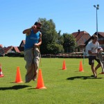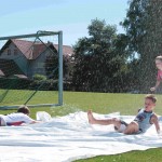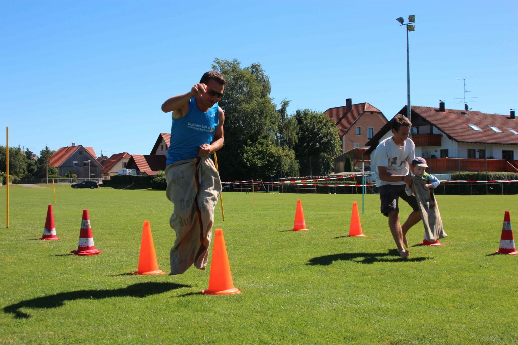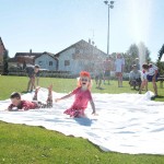 Anlässlich des diesjährigen Ferienprogramms der Stadt Bad Wurzach hat der Jugendausschuss des SV Arnach auf dem Sportgelände eine Kinderolympiade organisiert. Die kleinen Olympioniken bewiesen sich im Diskuswurf, Gummistiefelweitwurf und natürlich dem Sackhüpfen. Die zehn jungen Teilnehmer haben sich aber vor allem den Disziplinen, die mit kaltem Wasser zu tun gehabt haben, erfreut. Denn bei Temperaturen um die 30 Grad waren Wasserrutschen oder Apfeltauchen eine tolle Abwechslung zu der Hitze. Und so leerten einige Olympioniken kurzerhand die Wanne für das Apfeltauchen über die eigenen Köpfe, während ihre Eltern grinsend unter dem schattigen Pavillon zusahen. Wie den Bildern auch unschwer zu entnehmen ist, hatten auch die „großen Kinder“ ihren Spaß daran. Ein herzliches Dankeschön dem Jugendausschuss des SV Arnach, der sich für diesen Ferienprogrammpunkt engagiert hat.